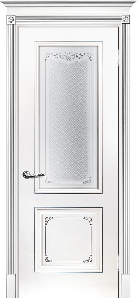 Межкомнатная дверь Смальта 14 Белый ral 9003 патина серебро