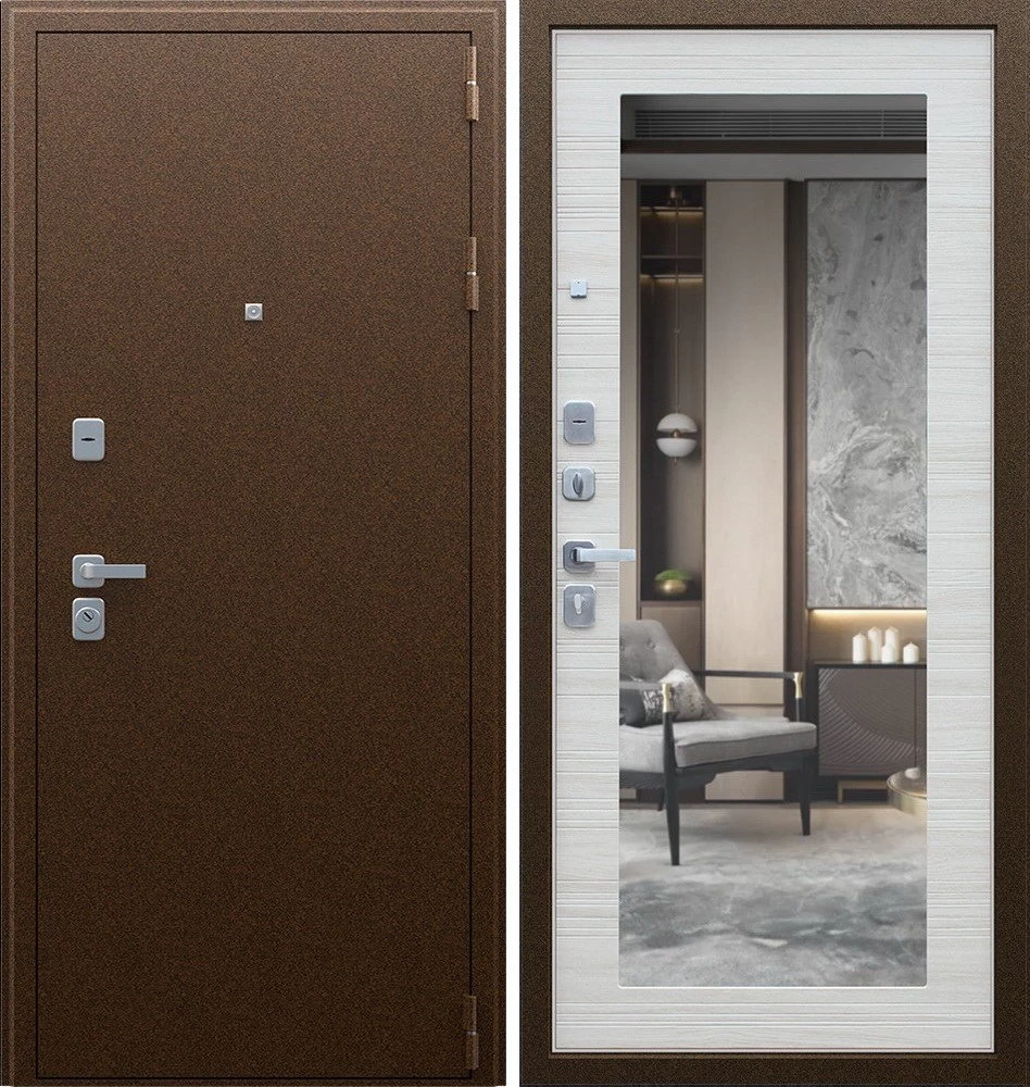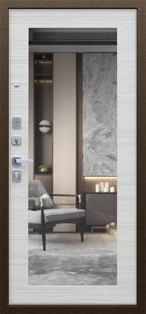 Надежная входная Дверь Спартак с зеркалом Акация Светлая Поперечная премиум класса по цене 36 223 руб. Большая толщина стали защитит от проникновения в ваш дом, квартиру или коттедж. Используется очень качественная фурнитура: замки, цилиндры, ручки, защелки. Покрытие и отделка двери изготовлено под внимательным контролем производителя. Дверь имеет долгий срок службы и гарантию.