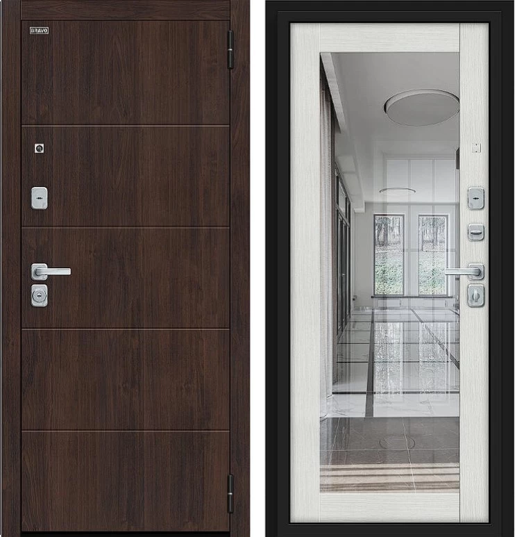 Надежная входная Дверь Браво Флэт/BChrome Almon/Bianco Melinga премиум класса по цене 42 123 руб. Большая толщина стали защитит от проникновения в ваш дом, квартиру или коттедж. Используется очень качественная фурнитура: замки, цилиндры, ручки, защелки. Покрытие и отделка двери изготовлено под внимательным контролем производителя. Дверь имеет долгий срок службы и гарантию.