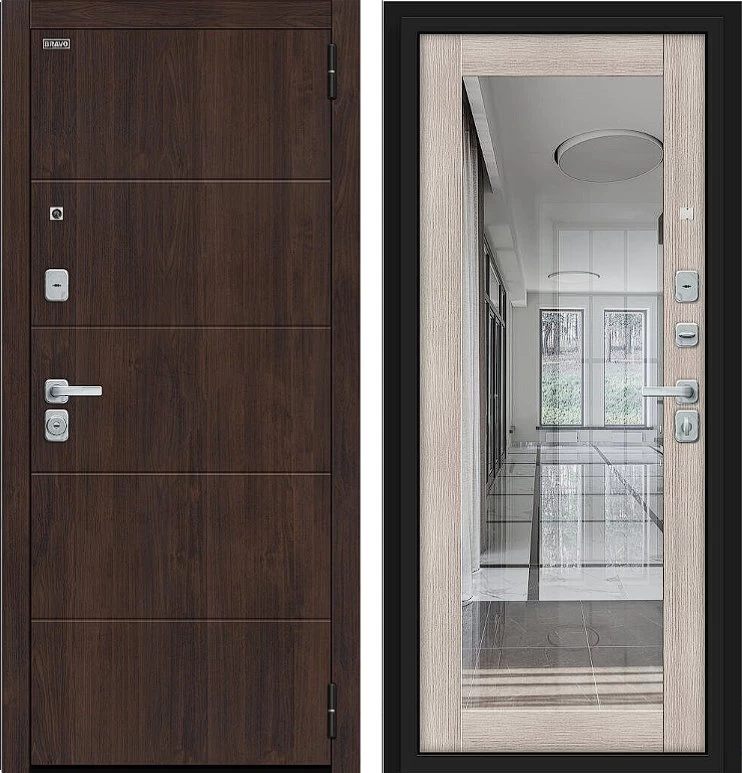 Надежная входная Дверь Браво Флэт/BChrome Almon/Cappuccino Melinga премиум класса по цене 42 123 руб. Большая толщина стали защитит от проникновения в ваш дом, квартиру или коттедж. Используется очень качественная фурнитура: замки, цилиндры, ручки, защелки. Покрытие и отделка двери изготовлено под внимательным контролем производителя. Дверь имеет долгий срок службы и гарантию.