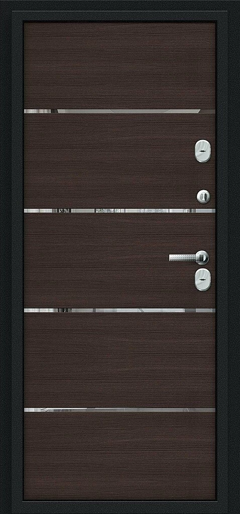 Надежная входная Входная дверь Thermo Лайн Букле черное/Wenge Veralinga BR4579 премиум класса по цене 48 364 руб. Большая толщина стали защитит от проникновения в ваш дом, квартиру или коттедж. Используется очень качественная фурнитура: замки, цилиндры, ручки, защелки. Покрытие и отделка двери изготовлено под внимательным контролем производителя. Дверь имеет долгий срок службы и гарантию.