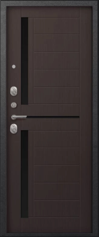 Надежная входная Дверь A-01 черный сатин - лиственница тёмная премиум класса по цене 30 873 руб. Большая толщина стали защитит от проникновения в ваш дом, квартиру или коттедж. Используется очень качественная фурнитура: замки, цилиндры, ручки, защелки. Покрытие и отделка двери изготовлено под внимательным контролем производителя. Дверь имеет долгий срок службы и гарантию.