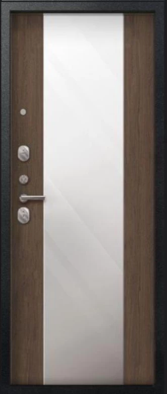Надежная входная Дверь V-04 Черный муар - Миндаль Зеркало премиум класса по цене 42 323 руб. Большая толщина стали защитит от проникновения в ваш дом, квартиру или коттедж. Используется очень качественная фурнитура: замки, цилиндры, ручки, защелки. Покрытие и отделка двери изготовлено под внимательным контролем производителя. Дверь имеет долгий срок службы и гарантию.