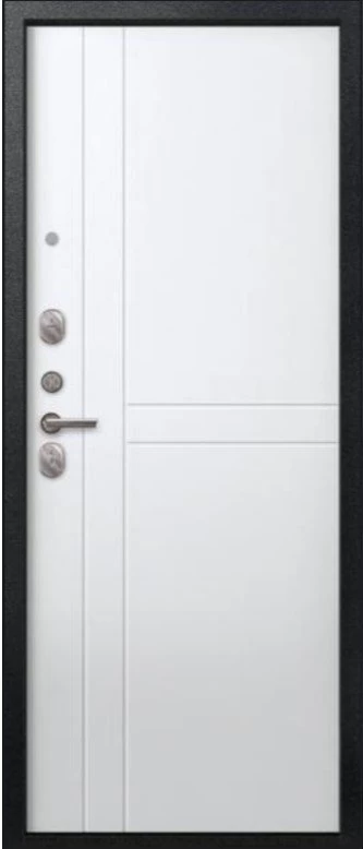 Надежная входная Дверь V-06 Черный муар - Белый премиум класса по цене 38 573 руб. Большая толщина стали защитит от проникновения в ваш дом, квартиру или коттедж. Используется очень качественная фурнитура: замки, цилиндры, ручки, защелки. Покрытие и отделка двери изготовлено под внимательным контролем производителя. Дверь имеет долгий срок службы и гарантию.