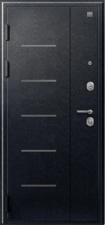 Надежная входная Дверь V-06 Черный муар - Лиственница темная премиум класса по цене 38 573 руб. Большая толщина стали защитит от проникновения в ваш дом, квартиру или коттедж. Используется очень качественная фурнитура: замки, цилиндры, ручки, защелки. Покрытие и отделка двери изготовлено под внимательным контролем производителя. Дверь имеет долгий срок службы и гарантию.